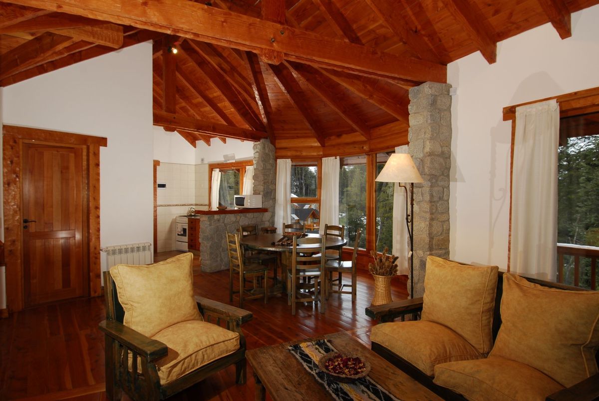 Cabañas amplias y equipadas. Cochera cubierta, parrilla, hogar de leños, hidromasaje. Desayuno, piscina, Gym & Spa